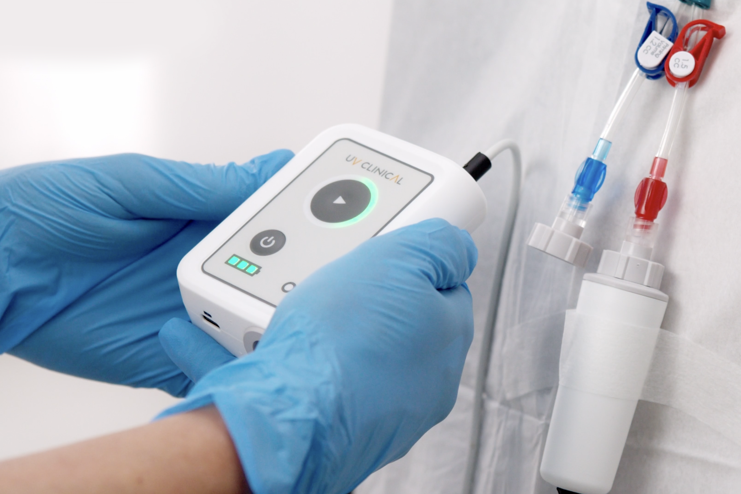 Our Microbial Reduction Medical Device is based on emerging UVC LED (Ultraviolet-C light – Light Emitting Diodes) technology and a patented light guide used to transmit and distribute the UVC light through the lumen of medical tubes such as catheters. UVC light has been used for over 100 years for disinfecting drinking water. UVC disinfection is a physical process where the UVC light modifies or destroys the DNA of microbial cells so that cell multiplication is prevented.